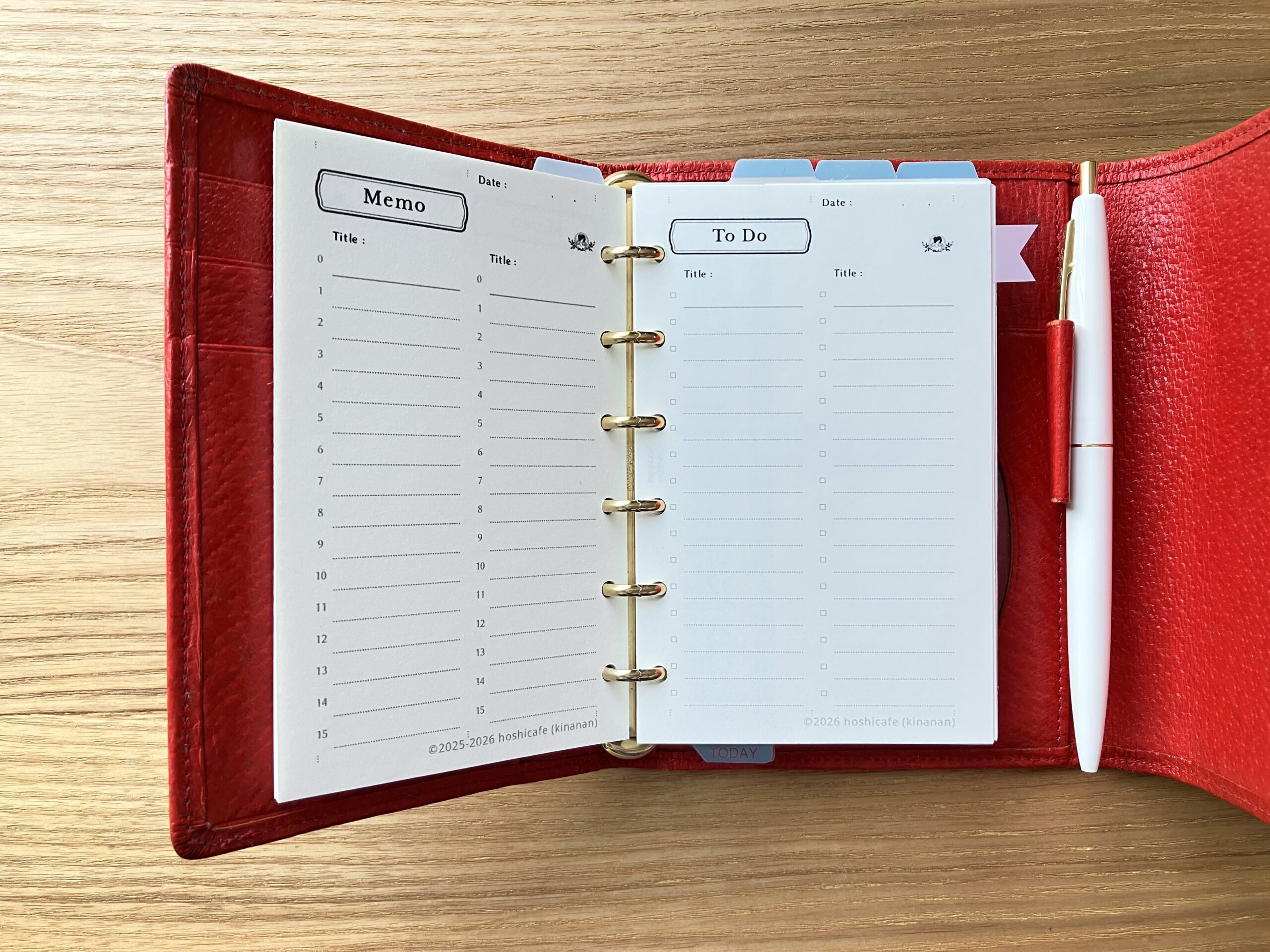 左右に分かれたレイアウトは、仕事や家事の管理はもちろん、 他のリフィルと組み合わせても使いやすい形になっています。