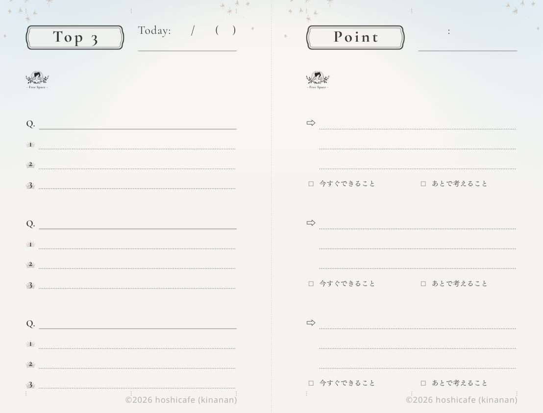 【無料PDF】思考を整理して行動につなげる「Top 3 & Point」リフィル|Starry Journal Series